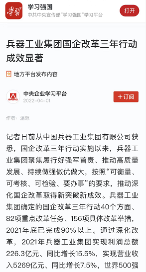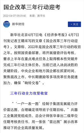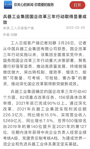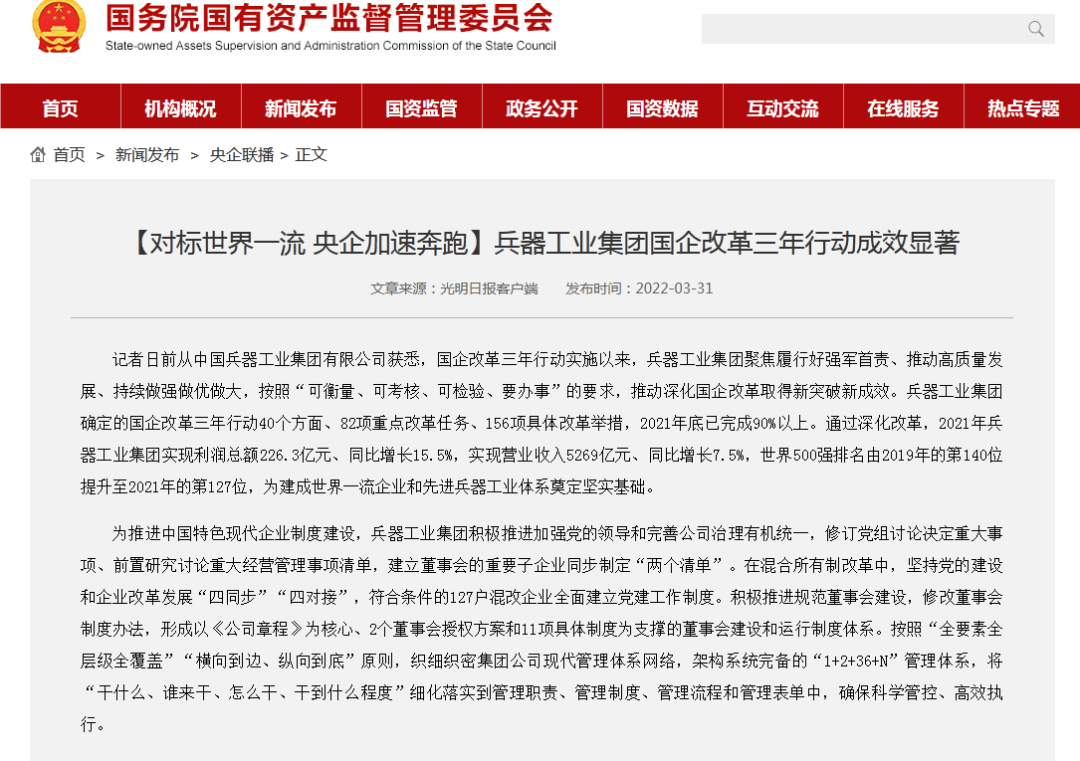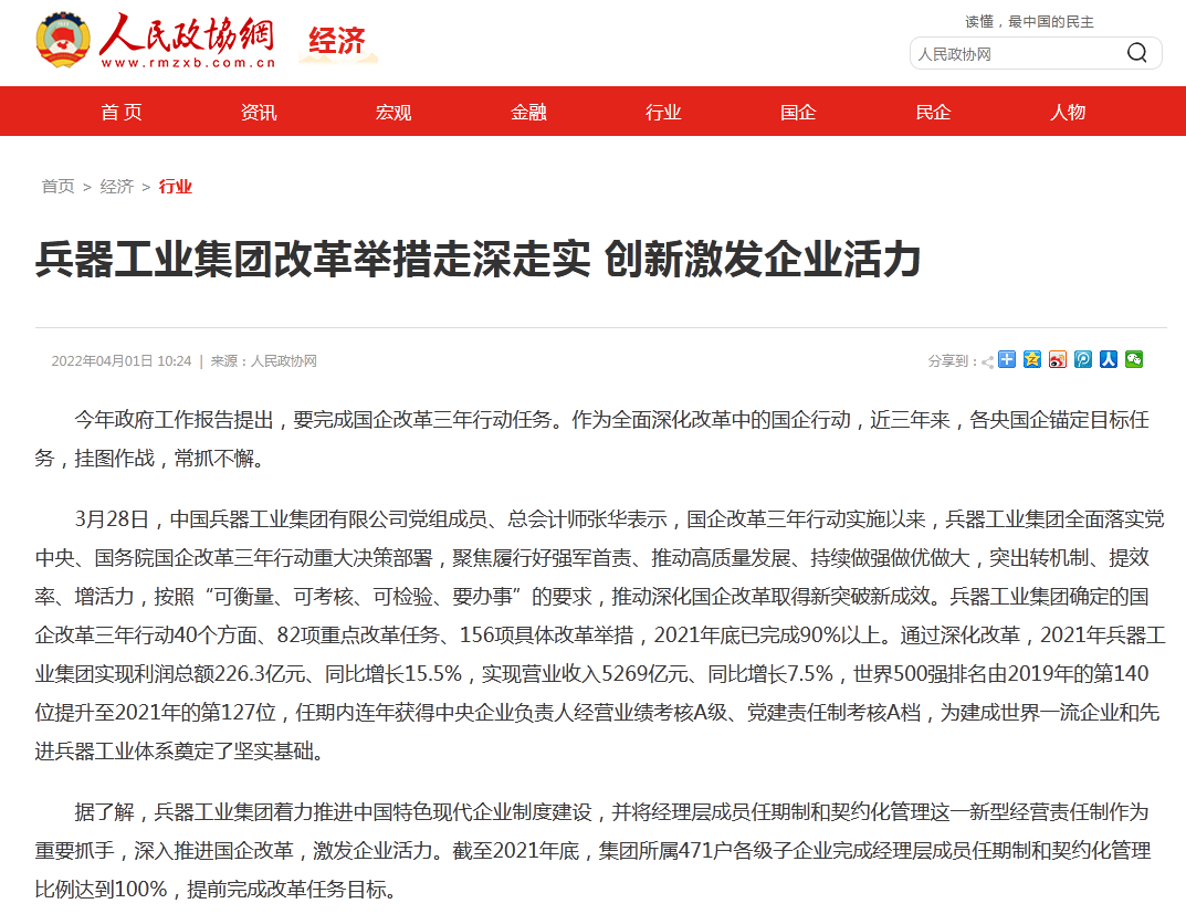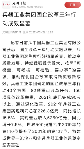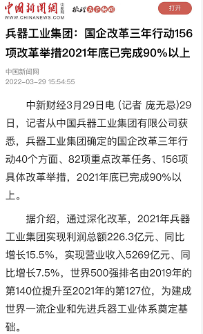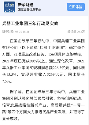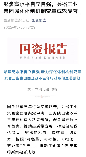 兵器工業(yè)集團(tuán)國(guó)企改革三年行動(dòng)工作成效引發(fā)廣泛關(guān)注丨國(guó)企改革看兵器 |